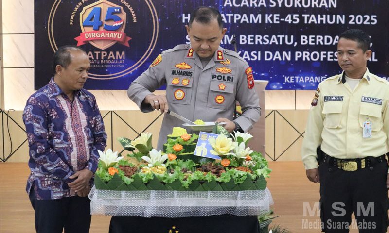 MediaSuaraMabes, Ketapang Kalbar – Kapolres Ketapang AKBP Muhammad Harris, S.H., S.I.K., M.I.K., CPHR bersama Pejabat Utama (PJU) Polres Ketapang menghadiri acara Syukuran Hari Ulang Tahun (HUT) Satuan Pengamanan (Satpam) ke-45 Tahun 2025 yang dilaksanakan di Aula Mapolres Ketapang, Kamis 08 Januari 2026.