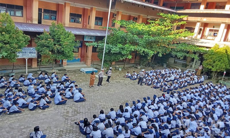 MediaSuaraMabes, Sibolga – Dalam rangka meningkatkan kesadaran serta menanamkan disiplin berlalu lintas sejak usia dini, Personel Satuan Lalu Lintas (Sat Lantas) Polres Sibolga melaksanakan kegiatan Pembinaan dan Penyuluhan (Binluh) bertajuk Police Goes to School di SMP Negeri 2 Sibolga, pada Senin, 19 Januari 2026.