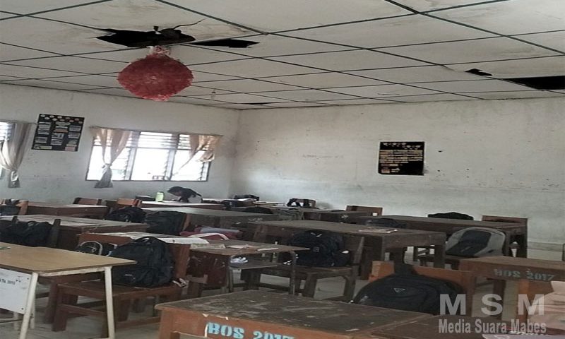 Seperti pantauan awak media melihat kondisi ruangan langsung, terlihat bahwa atap amburadul mengalami kebocoran luas plapon. Dinding dalam dan luar penuh dengan noda jamur, keropeng, serta cat yang mengelupas.