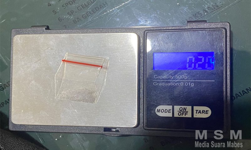 Setelah dilakukan pengamanan, petugas langsung melakukan penggeledahan dan menemukan barang bukti berupa satu paket diduga narkotika jenis sabu yang dibungkus plastik klip warna bening dengan berat bruto 0,21 gram.