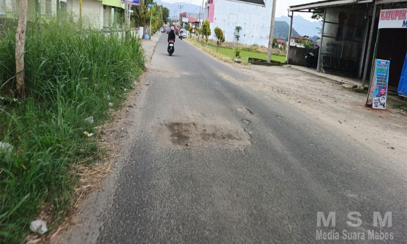 MediaSuaraMabes, Agam – Kondisi jalan raya yang menghubungkan Kota Bukittinggi menuju Kabupaten Agam, seperti Kecamatan Tilatang Kamang, Kamang Magek, dan sejumlah kecamatan sekitarnya, berada dalam kondisi sangat memprihatinkan. Permukaan jalan penuh dengan lubang-lubang besar, lekukan yang dalam, serta kerusakan struktur aspal yang menyebabkan permukaan jalan tidak rata. Kondisi ini mengganggu akses lalu lintas sekaligus menjadi ancaman serius terhadap kenyamanan dan keselamatan pengguna jalan pada umumnya.
