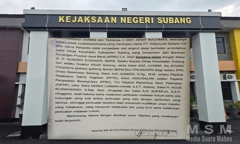 Jakarta Bicara – MSM Group Daerah Kuasa Hukum dari Tiga Tersangka Terkait Lapdu Dugaan Tipikor Pengadaan Mobil Ambulans Arahkan Penelusuran ke Pihak Dinas Kesehatan Subang