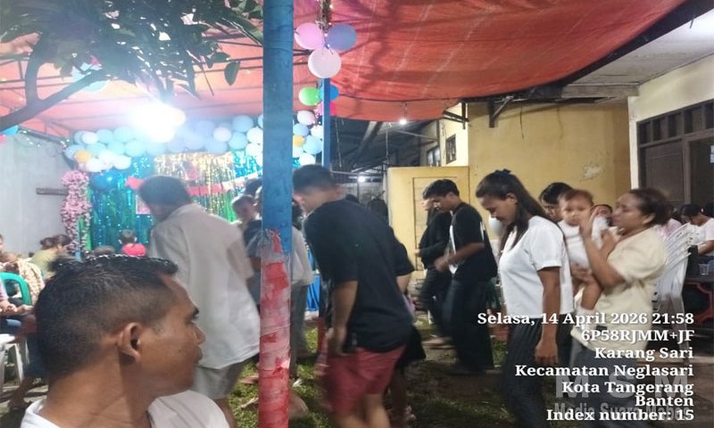 MediaSuaraMabes, Tangerang – Momentum penuh kehangatan terjadi di Kecamatan Neglasari, Kota Tangerang, pada Selasa (14/04/2026) malam. Panglima Daerah (Pangda) Pemuda Batak Bersatu (PBB) Provinsi Banten, Saud Maruntung Marbun, menghadiri acara perayaan ulang tahun pertama Prischilla, putri dari sahabat lamanya, Eghy Atambua.