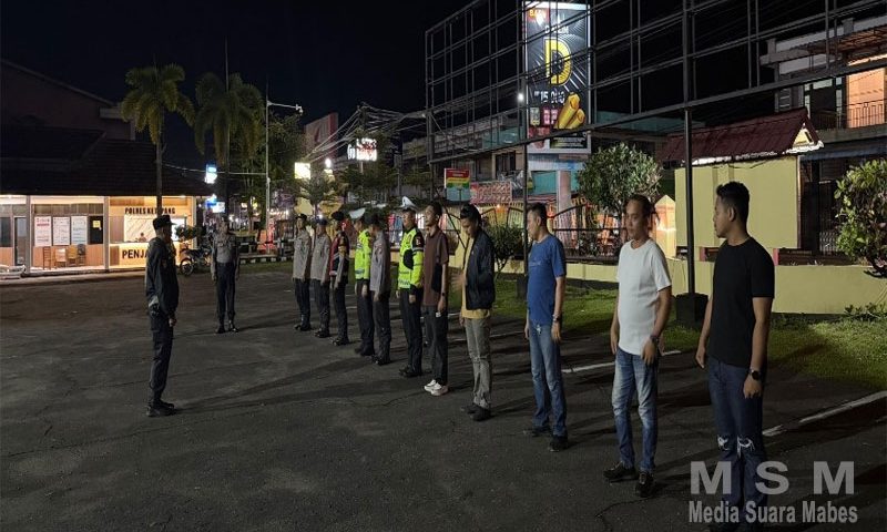 MediaSuaraMabes, Ketapang Kalbar – Jajaran Polres Ketapang melaksanakan patroli malam minggu pada Sabtu (18/04/2026) Pukul 22.00 Wib. Pelaksanaan patroli tersebut dipimpin langsung Kasium IPTU Arisman dan diikuti oleg gabungan anggota Polres Ketapang dari berbagai satuan yang tergabung dalam Unit Kecil Lengkap (UKL). Kapolres Ketapang AKBP Muhamaad Harris, S.H., S.I.K., M.I.K., CPHR melalui Kasi Humas IPTU Niptah Alimudin menyampaikan bahwa kegiatan patrol cipta kondisi pada malam minggu ini dilakukan dalam rangka menjaga situasi keamanan dan ketertiban masyarakat (kamtibmas) tetap kondusif, khususnya pada malam akhir pekan, Dirinya menambahkan jajaran Polres Ketapang menggelar patroli rutin pada Sabtu malam untuk mengantisipasi potensi gangguan kamtibmas, termasuk aksi balap liar yang kerap digelar para remaja.