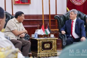 MediaSuaraMabes, Jakarta – Menteri Pertahanan Sjafrie Sjamsoeddin menerima kunjungan kehormatan Duta Besar Luar Biasa dan Berkuasa Penuh Palestina untuk Indonesia, Zuhair Al-Shun, di Kantor Kementerian Pertahanan,…